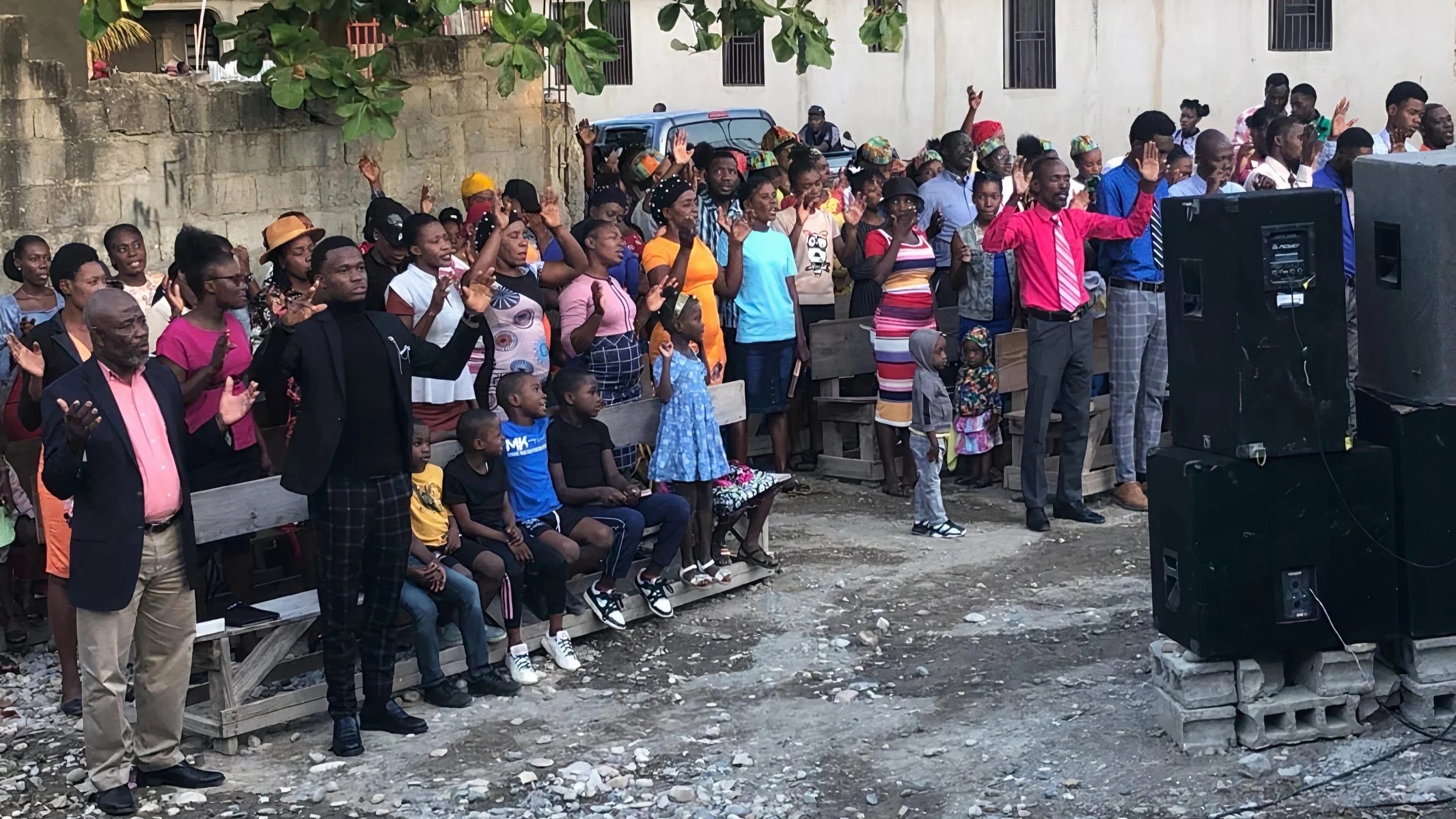 Due to ongoing safety concerns in Haiti, the churches chose not to travel far but instead hosted the crusade right in the church yard. A large platform was built, sound equipment was installed, and worship teams from across the region came together to lift up the name of Jesus. The yard was filled each night with believers and seekers alike—standing, singing, and surrendering.